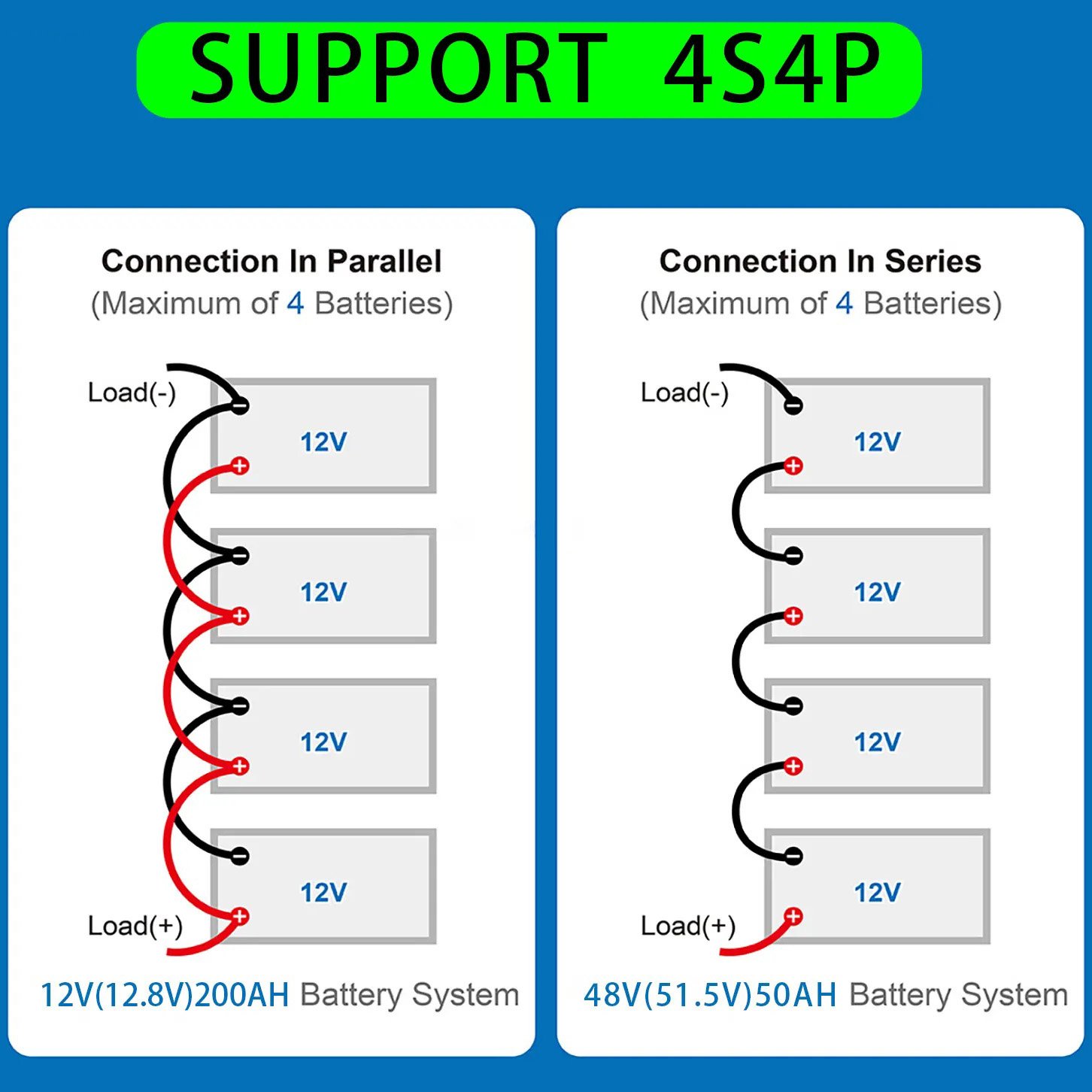 •High Capacity: 50Ah capacity ensures long runtime and reliable power supply.